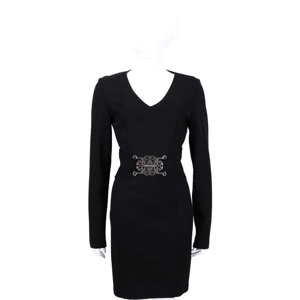 VERSACE 黑色V領金屬圖騰腰飾長袖洋裝 product image 1