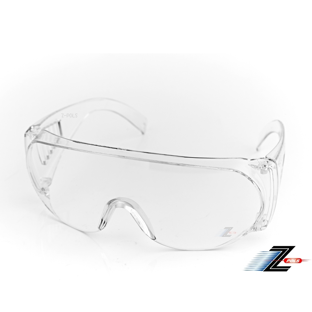 【Z-POLS】可包覆眼鏡於內設計 全透明PC防爆安全鏡片 抗UV400防風眼鏡(有無近視皆可用)