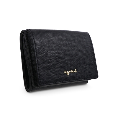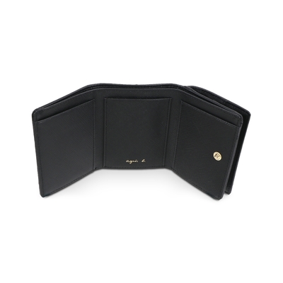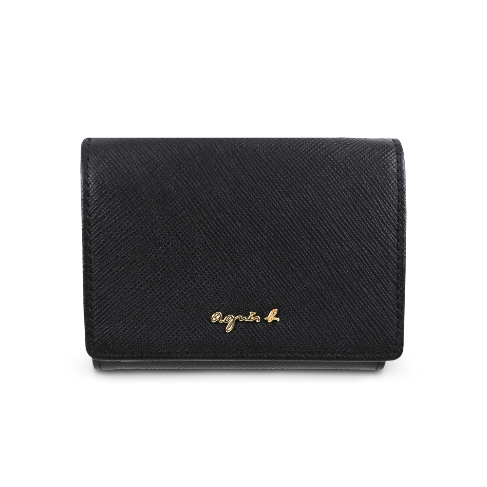 agnes b. Voyage b. logo防刮皮革三層短夾(黑色) product image 1