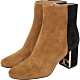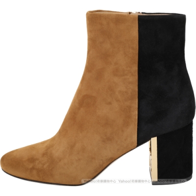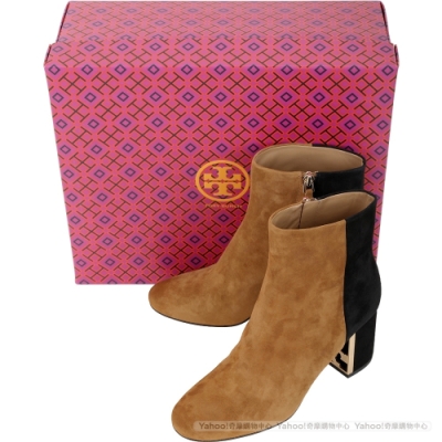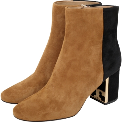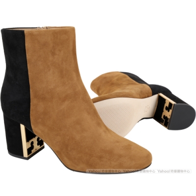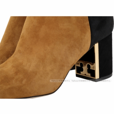 TORY BURCH Gigi T字金屬框粗跟撞色麂絨短靴(深駝) product image 1