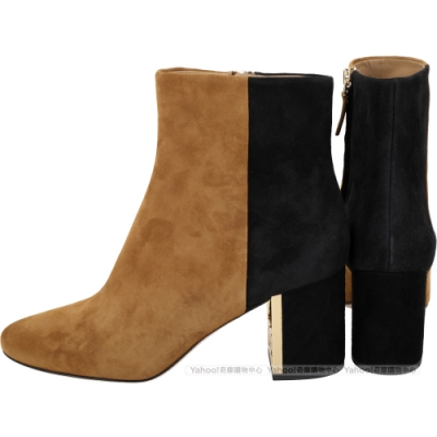 TORY BURCH Gigi T字金屬框粗跟撞色麂絨短靴(深駝)