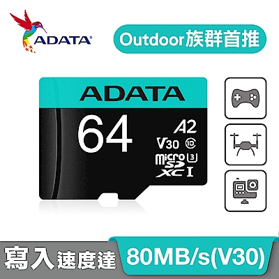 - 昌運監視器 ADATA威剛 Premier microSD HC UHS-I U1 64G記憶卡 附轉卡監視器網路攝影機$739$777限時下殺