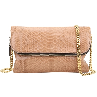 ZAGLIANI Shiny Python 蟒蛇紋鍊帶肩背/手拿包(膚色)