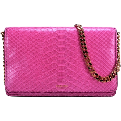 ZAGLIANI Bon Bon Python 蟒蛇紋鍊帶肩背/手拿包(桃紅色)