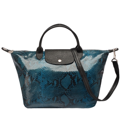 LONGCHAMP LE PLIAGE PYTHON蟒蛇蚊短把手提/斜背包(大-西洋杉藍)