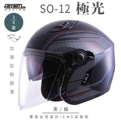 - 採用金屬排齒扣,騎車穿脫好方便【SOL】SO-12 極光 黑/橘 3/4罩(開放式安全帽│機車│內襯│半罩│加長型鏡片│內藏墨鏡│GOGORO)$2,08189折限時下殺贈品