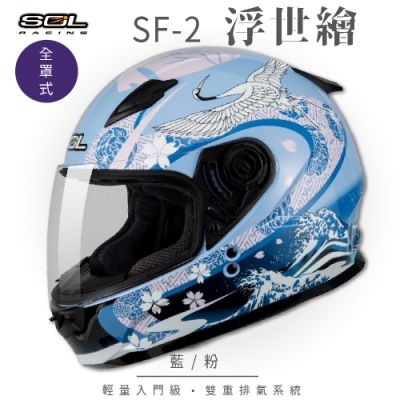 - 情侶帽,SF2M男生款,SF2女生款【SOL】SF-2 浮世繪 藍/粉 全罩(全罩式安全帽│機車│內襯│鏡片│輕量款│情侶款│小頭款│GOGORO)$2,68189折限時下殺贈品