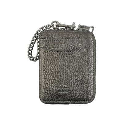COACH金屬灰荔枝紋皮革鏈帶方型卡夾零錢包$2,2808折升級購限時下殺