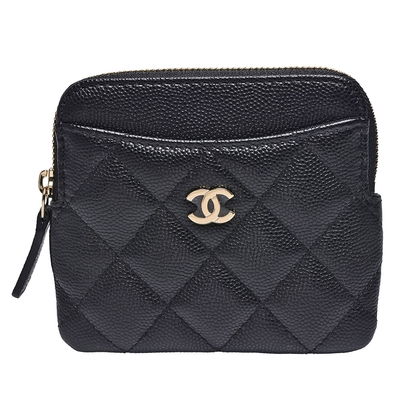 結帳89折↘再享0利率CHANEL香奈兒 經典菱格粒紋牛皮金色雙C LOGO拉鍊卡夾/吐司零錢包(黑)$42,06488折5(1)升級購挑戰低價