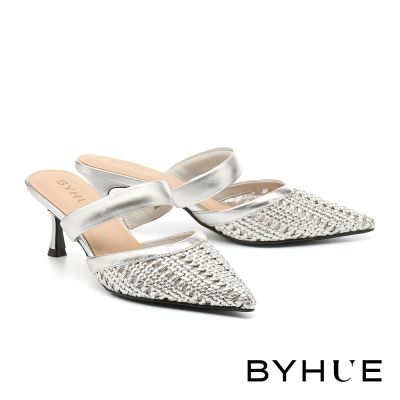 - 穆勒鞋 BYHUE 簡約純欲晶鑽方釦繫帶羊皮軟芯低跟穆勒拖鞋-棕$2,280活動