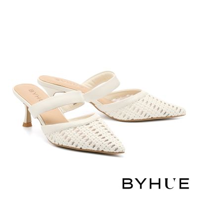 - T2R-正韓空運-真皮拼接編織厚底穆勒鞋-增高約7公分-白$1,34288折挑戰低價