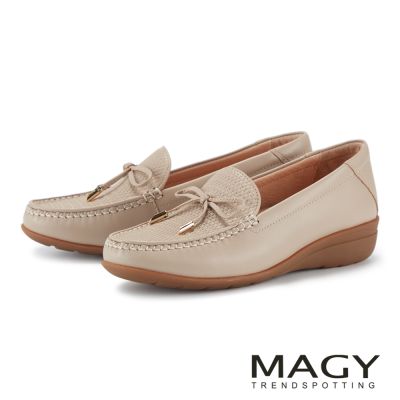 - MAGY 編織羊皮蝴蝶結楔型莫卡辛休閒鞋 米色$2,35989折挑戰低價