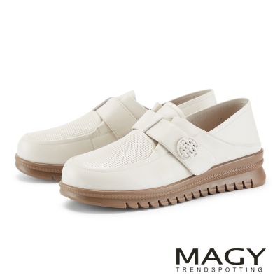 - MAGY 舒適牛皮造型圓釦厚底休閒鞋 米色$2,18389折挑戰低價