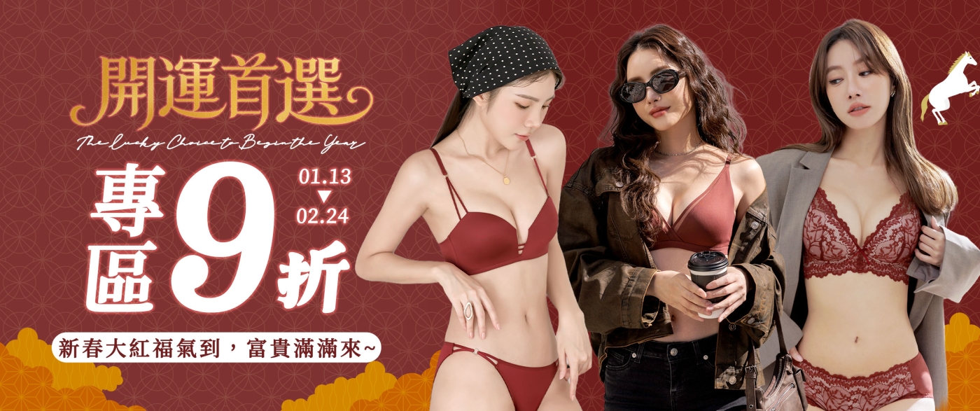 紅內衣專區9折,1/13-2/24
